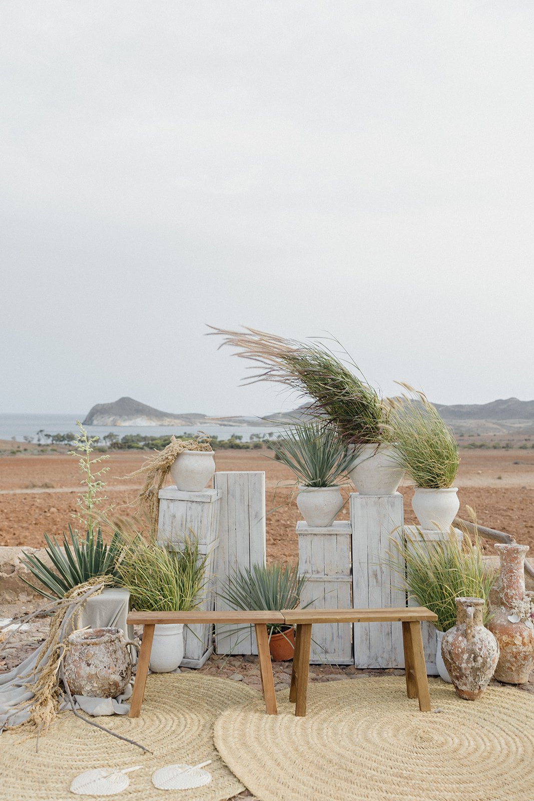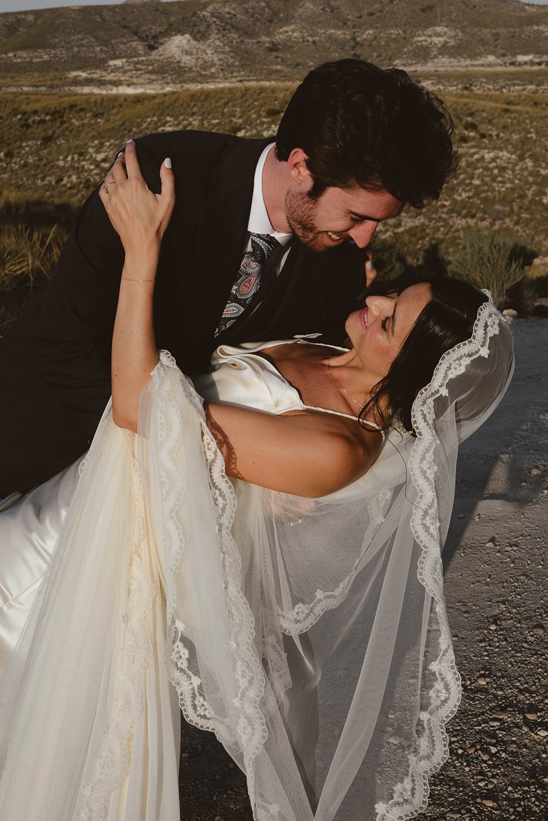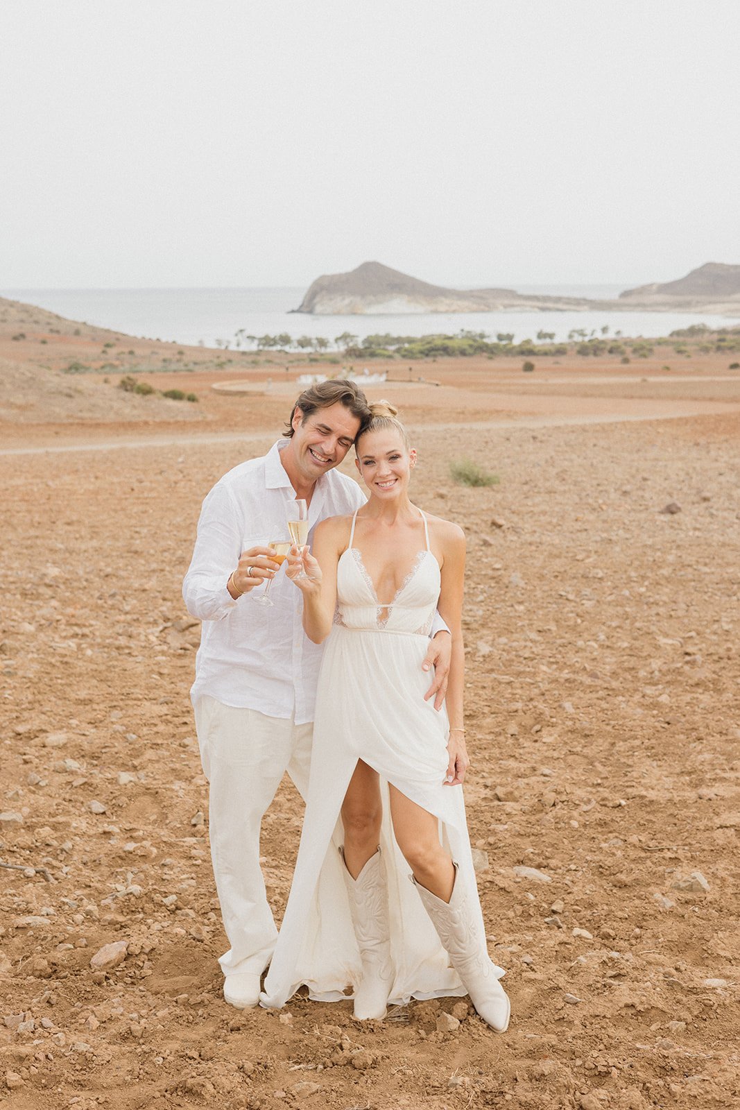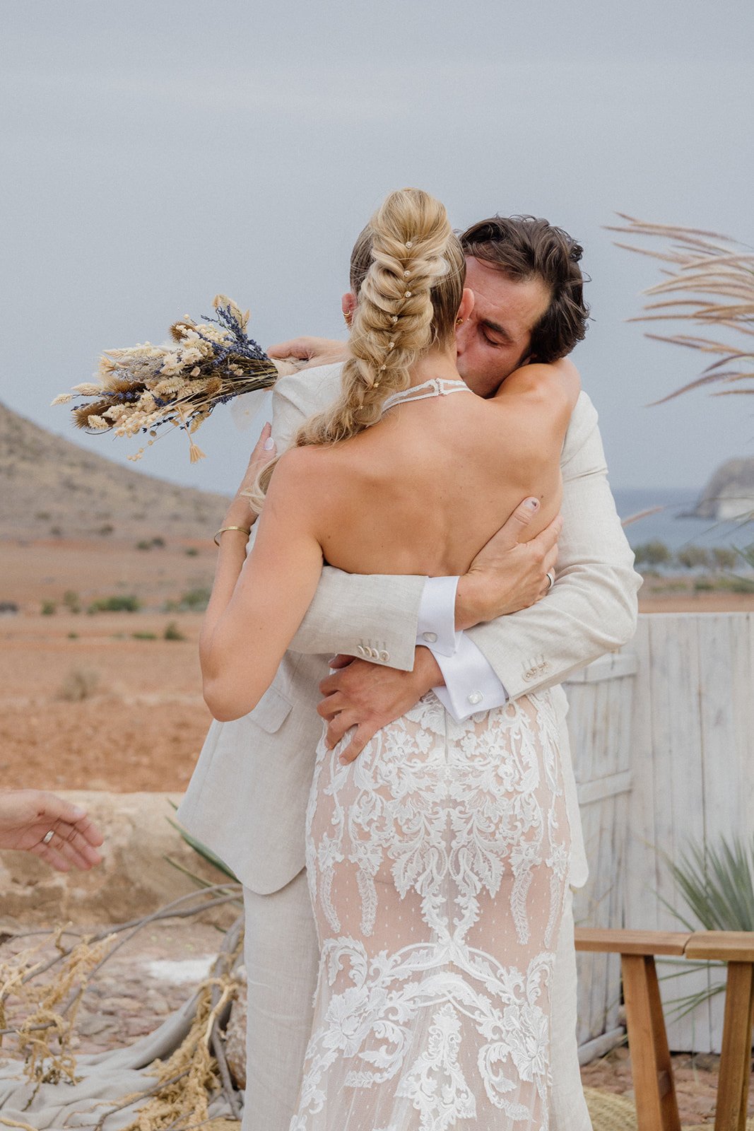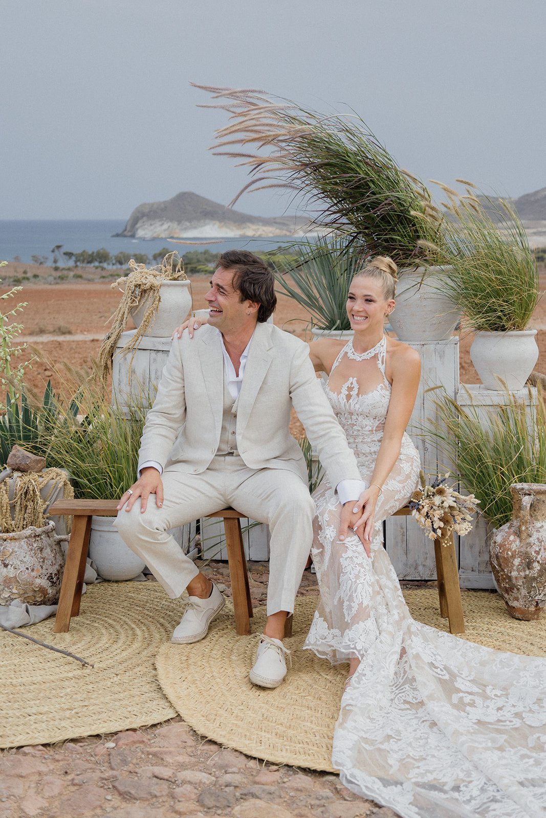 Ellos son nuestra pareja de espíritu risueño y libre, desde Zaragoza se trasladaron a nuestro cabo de gata concretamente a Aguamarga, donde se dieron su si quiero, en una boda intima bajo un gran telar, con detalles artesanales y hechos a mano por la propia pareja y familiares, todo en sintonía con el parque natural.