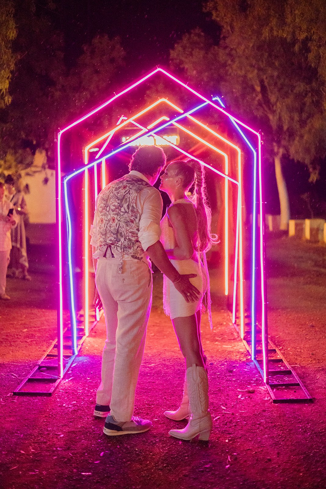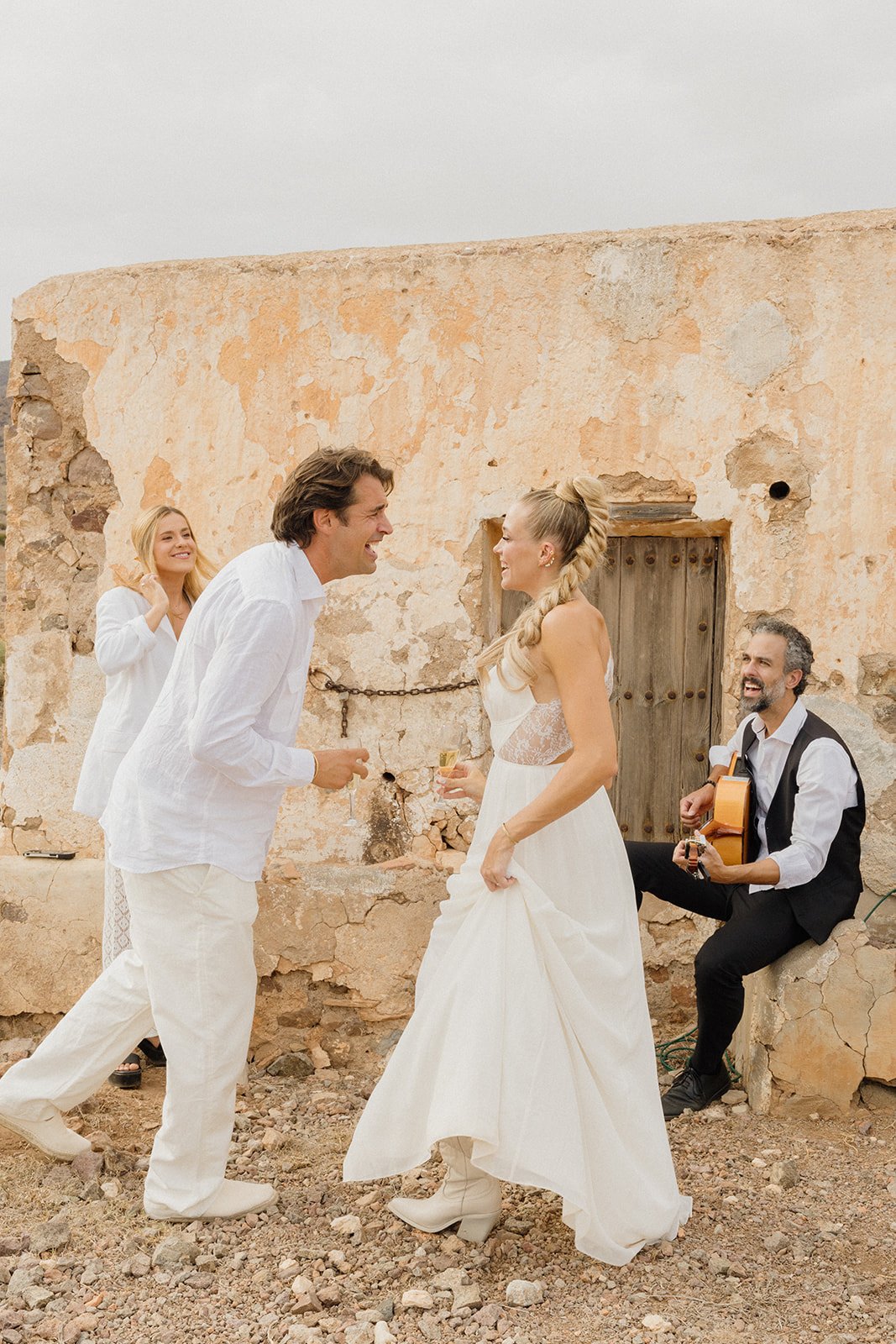 Ellos son simplemente dos locos felices, con ganas de comerse el mundo y así fue su boda, se dieron el sí quiero antes una de las playas más bonitas de España (Genoveses), para luego celebrarlo de una manera alocada bajo un festival de emociones indie y reggeton.