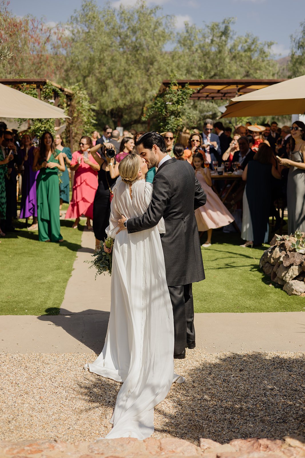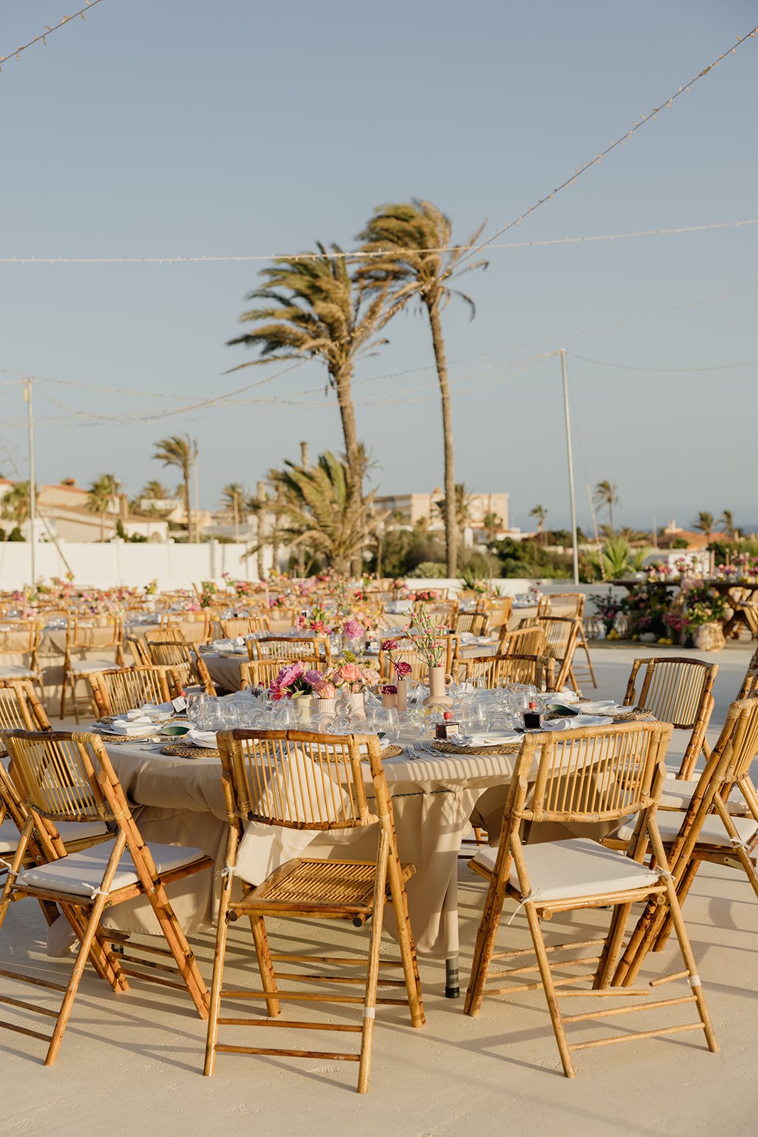 Lo de Patry y Alex sin duda fue toda una boda de cine, con ellos trabajamos desde el inicio en una la cual tenia que ser una gran fiesta, pues que una boda era la FIESTA DEL AMOR, por ello unimos lo que los simboliza, amor, familia, rock y yoga, por lo que no había mejor entorno que el parque natural de cabo de gata, lugar donde todo ello se fundía en uno. Siempre acompañados de música en directo y una decoración boho preciosa.