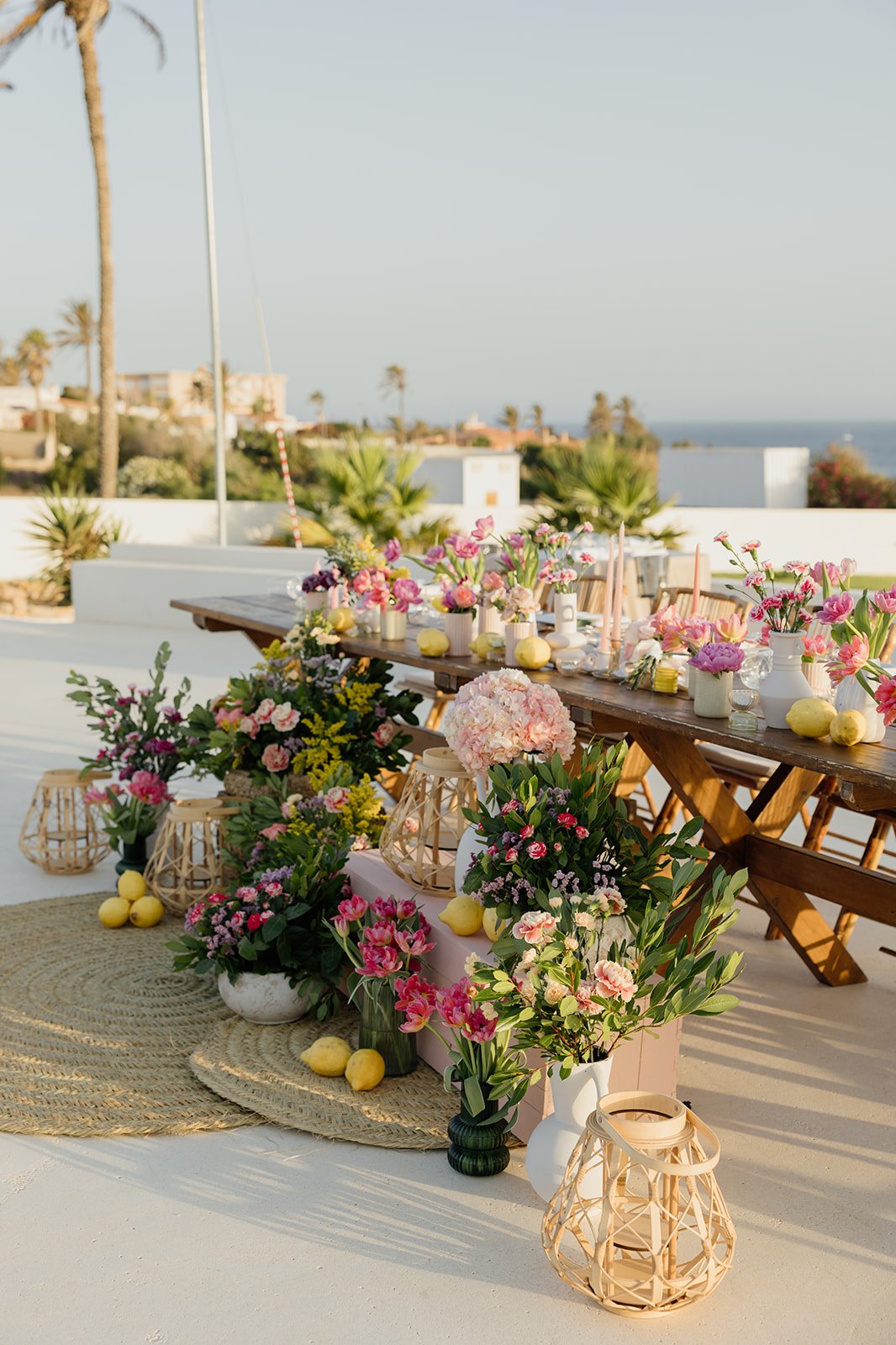 Sin duda la de ellos fue una boda primaveral, llena de amor color y buenas energías, se dieron el si quiero en su pueblo natal, iglesia de Albox- Almería, para la iglesia eligieron una decoración alegre, fresca y rompiendo las simetrías en puerta, para celebrarlo nos trasladamos hasta los Jardines la Tejera, seguimos toda la gama de iglesia en cuanto a colores, acompañada por una papelería de ensueño creada por la hermana del novio (la papelería perfecta) donde disfrutaron hasta el amanecer.
